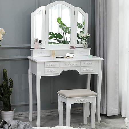 4.6 out of 5 stars 1,289 £99.99 £ 99. ( 3.8 ) out of 5 stars 246 ratings , based on 246 reviews current price $99.99 $ 99. Product title ktaxon elegance white dressing table vanity table and stool set wood makeup desk with 4 drawers & mirror average rating: This solid wood dressing table with mirror is a complete package and showcases ultimate functionality in one unit. Next to the drawer there's a hinged lid that hides both mirror and practical compartments. Whether you use it as a dressing table, desk or sideboard, you can combine it with other furniture in the series. 99 list list price $180.93 $ 180. Elegant dressing table ali53 very pleased with this product, mirror is perfect size, drawers very useful for make up etc, very pleased with it. Crafted from mindi timber, a slimline build makes room for three generous storage drawers with simplistic bar handles. Prop your favourite lamp on the spacious tabletop, illuminating the white finish that brings a fresh look to every bedroom. The only things i would say is the draw is not that smooth and it does stick a little. Vasagle dressing table with large and frameless mirror, modern dressing table, removable organiser, rubber wood stool, 5 drawers, for bedroom, wardrobe, white rdt25wt. 5 beautiful sn1983 beautiful dressing table i love it.